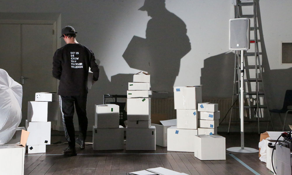 In deze workshop weet je niet wat je overkomt. De leerlingen denken dat ze naar een workshop gaan maar… ze stappen het gymlokaal binnen en plots is daar een andere wereld ontstaan. In een dikke mist doemt een theatertechnicus op. Kreunend en steunend bouwt die aan… een decor?