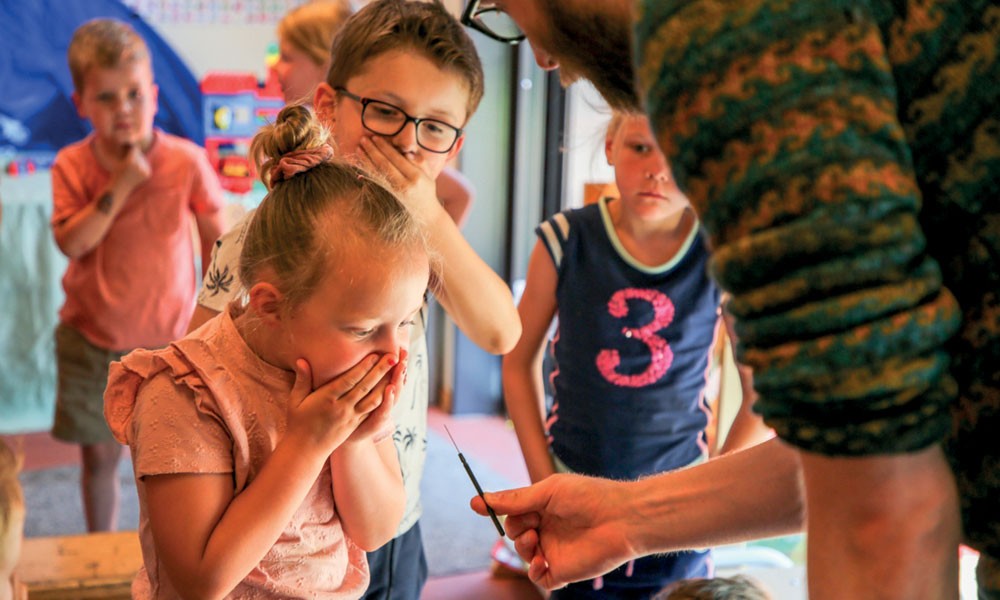 - De voorstelling is een ode aan verbeelding, verwondering en nieuwsgierigheid en prikkelt deze bij de kinderen